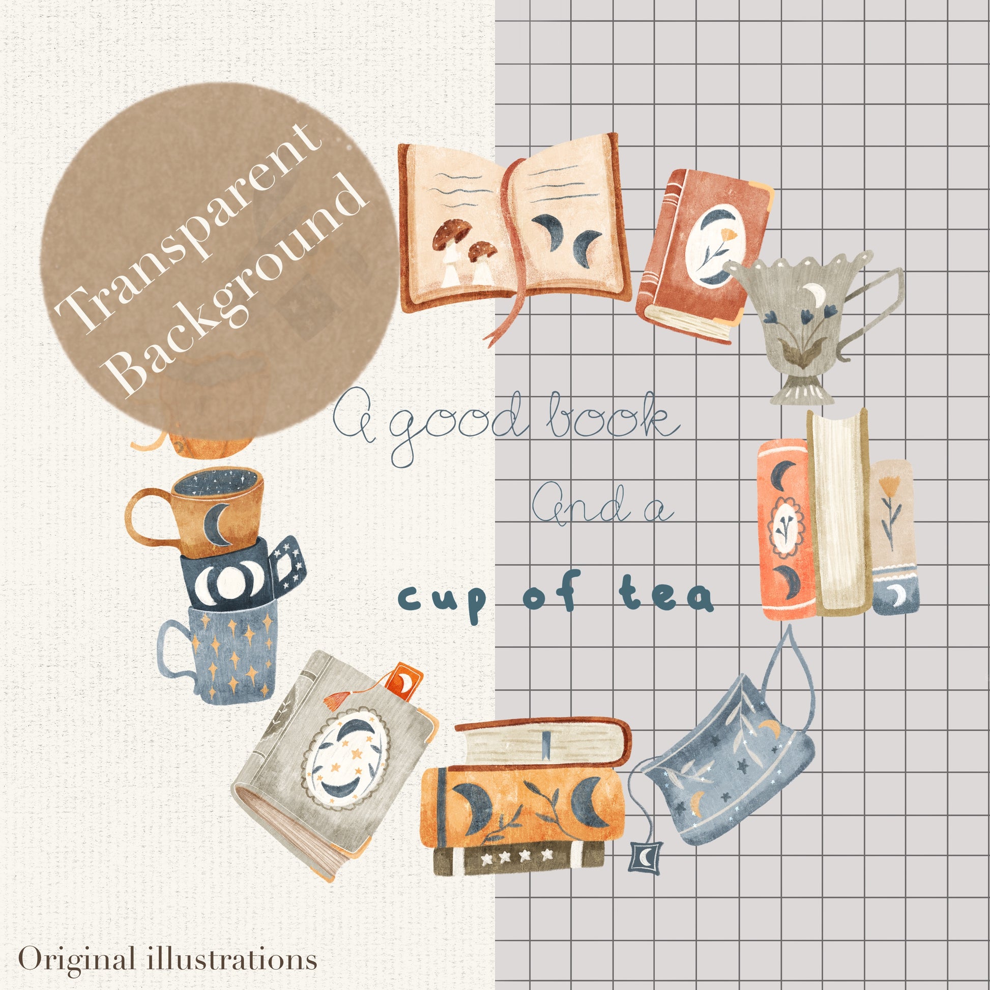 A cup of tea & a good book PNG